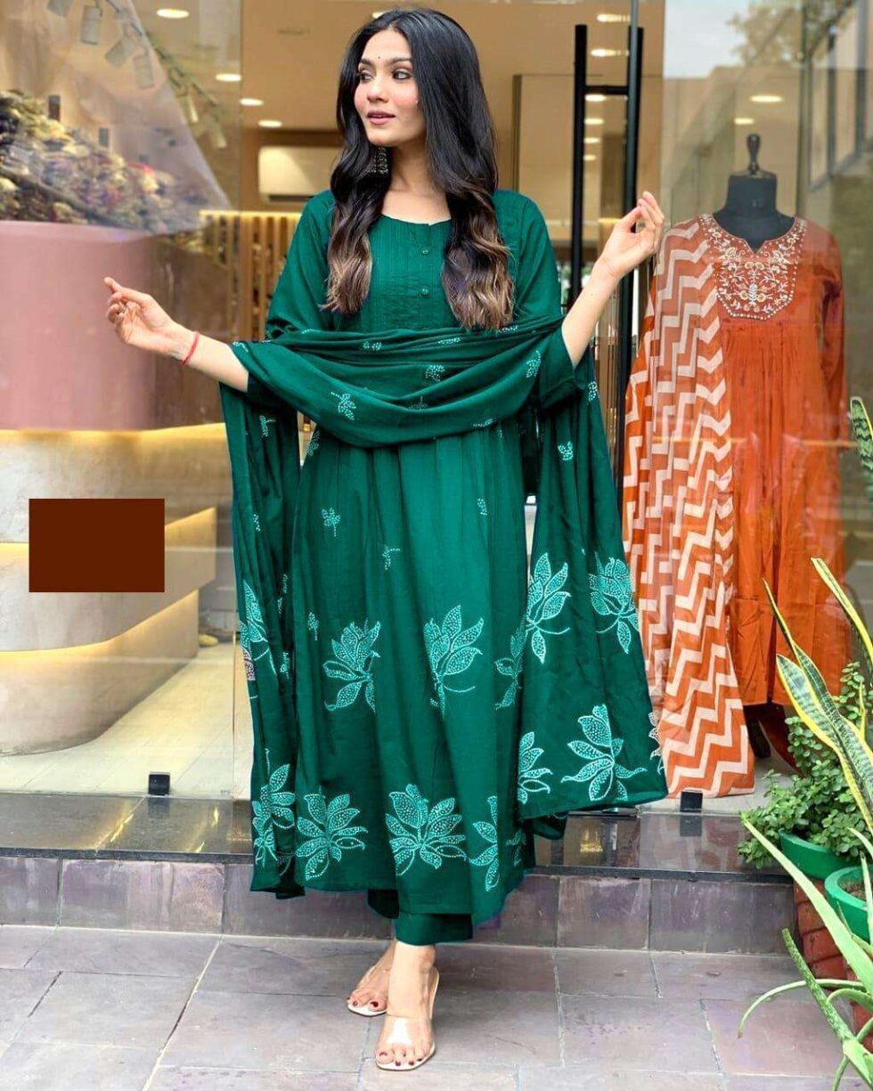 Bring traditional charm and modern elegance together with this Long Kurta featuring Discharge Floral Print and Printex, paired beautifully with matching pants and a dupatta. This set is designed for women who appreciate comfort without compromising on style. Whether you’re attending a festive occasion or a casual gathering, this set ensures you look graceful and feel comfortable all day long.